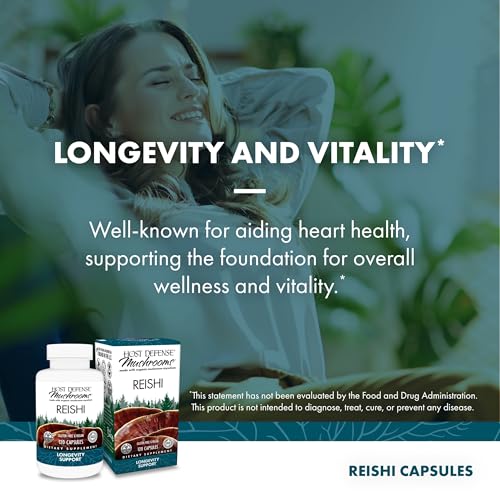 Host Defense Reishi Capsules – Heart & Immune Health Support Supplement – Mushroom Supplement to Support Energy & Vitality – Reishi Supplement to Aid Overall Well-Being – 120 Capsules (60 Servings)*