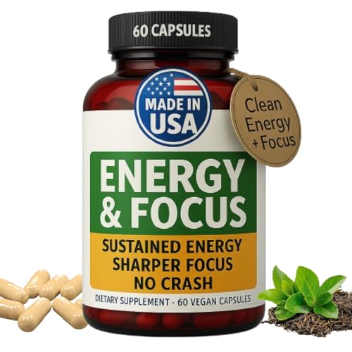 Energy & Focus Capsules – Natural Nootropic Supplement for Sustained Mental Clarity, Enhanced Concentration & Alertness – No Crash, Vegan, Non-GMO – 60 Caps