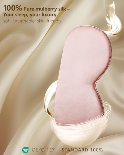 Silk Sleep Mask for Women – Soft Breathable Organic Natural Mulberry Silk Fabric Blackout Eye Mask for Sleeping with Adjustable Straps No Pressure Eye Mask for Travel Essentials Gifts (Pink)