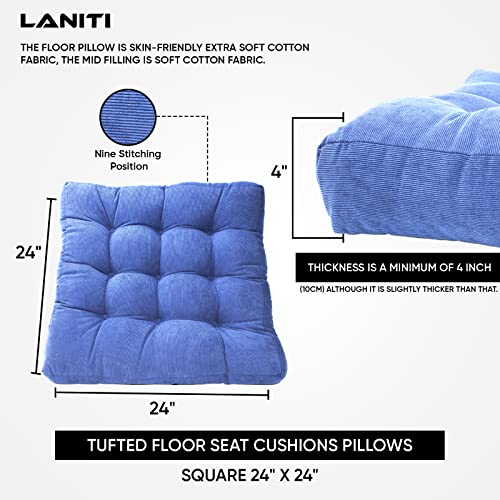 LANITI 24” Inch Extra Large Floor Cushions Tufted Floor Pillow for Adults Square Meditation Ultimate Comfort Oversized Pillows for Floor Cushion (Aqua)